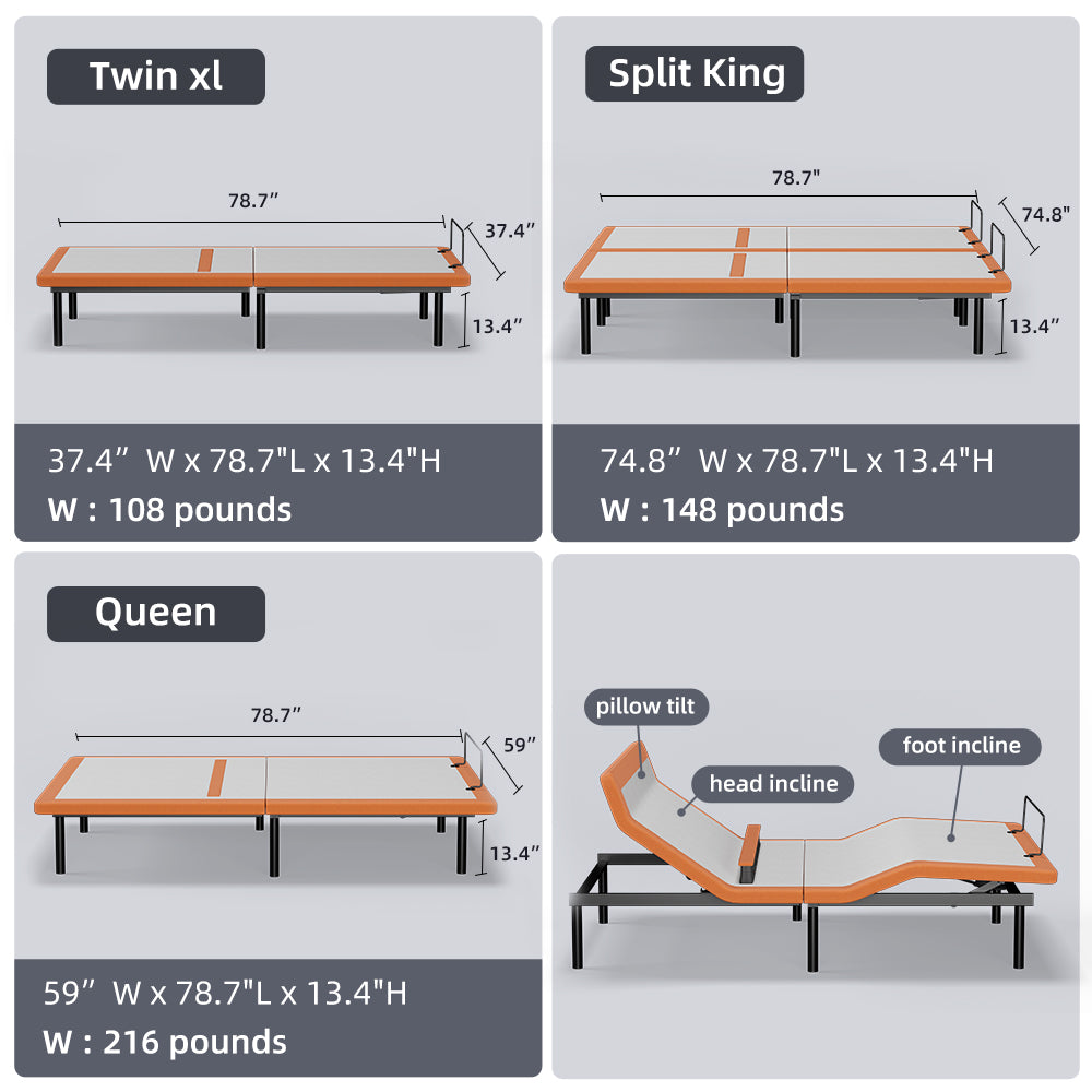 - German OKIN Motor & Steel Frame:Supports up to 750 lbs, ultra-quiet, fits most headboards for strength & style.