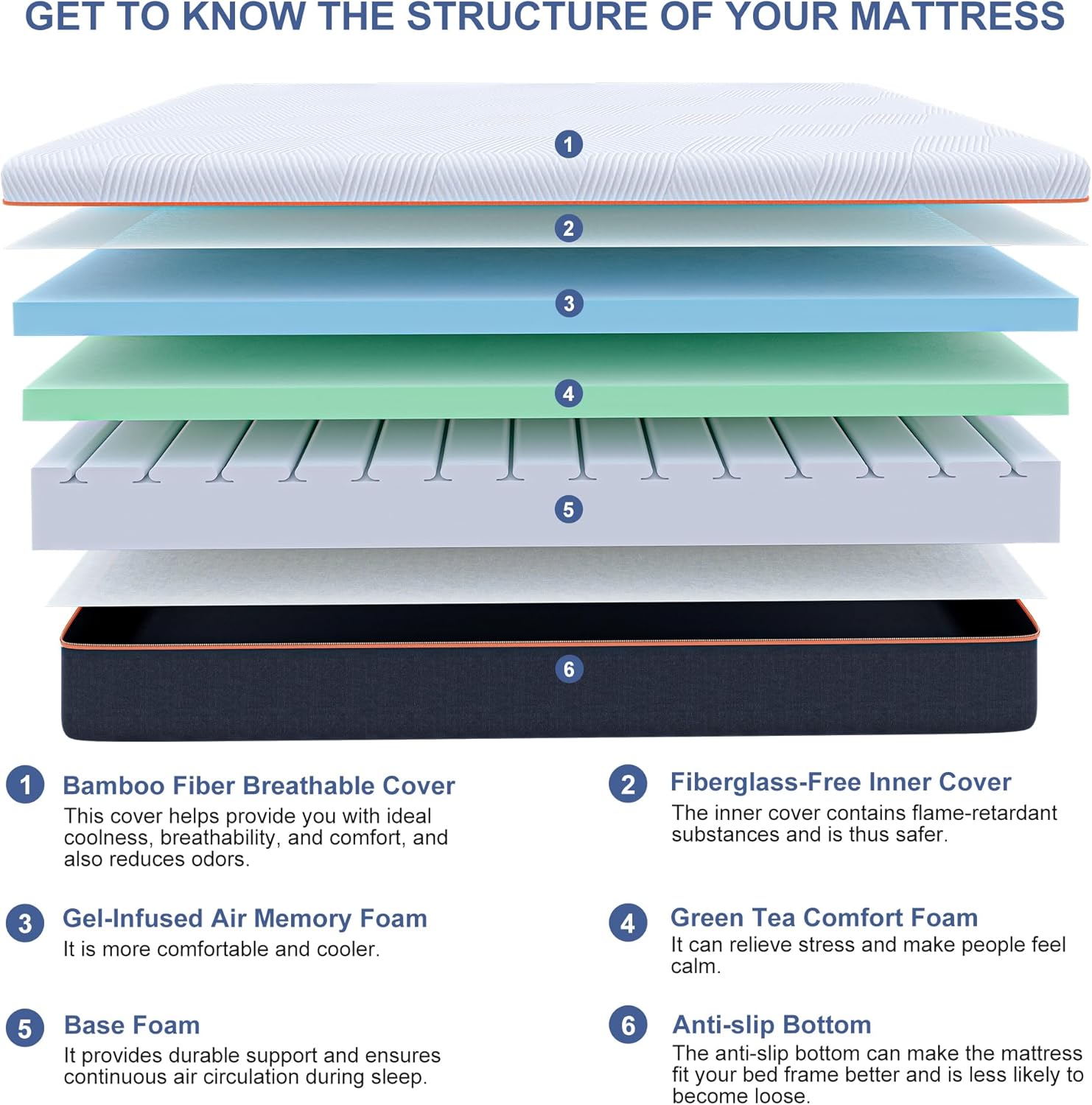 - High-density support base maintains mattress shape and stability over long-term use.
